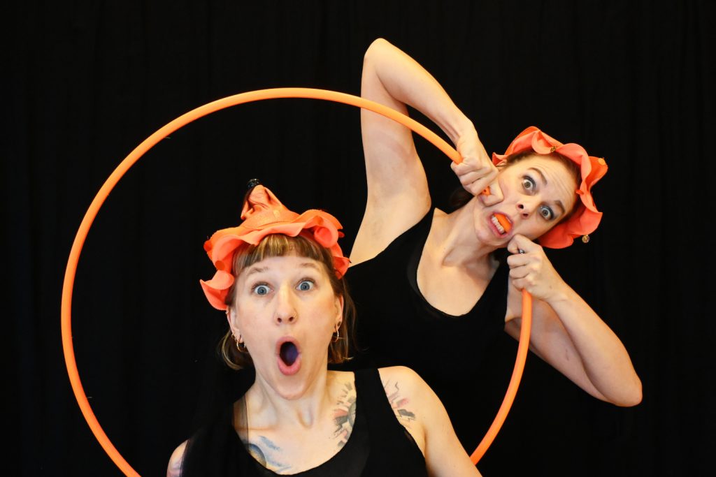Die Squeezed Peaches bringen Stimmung auf Straßen und Bühnen. Neben Hula-Hoop-Shows zählen auch Workshops für Kinder und Erwachsene sowie humorvolle Moderation zu ihrem Repertoire.